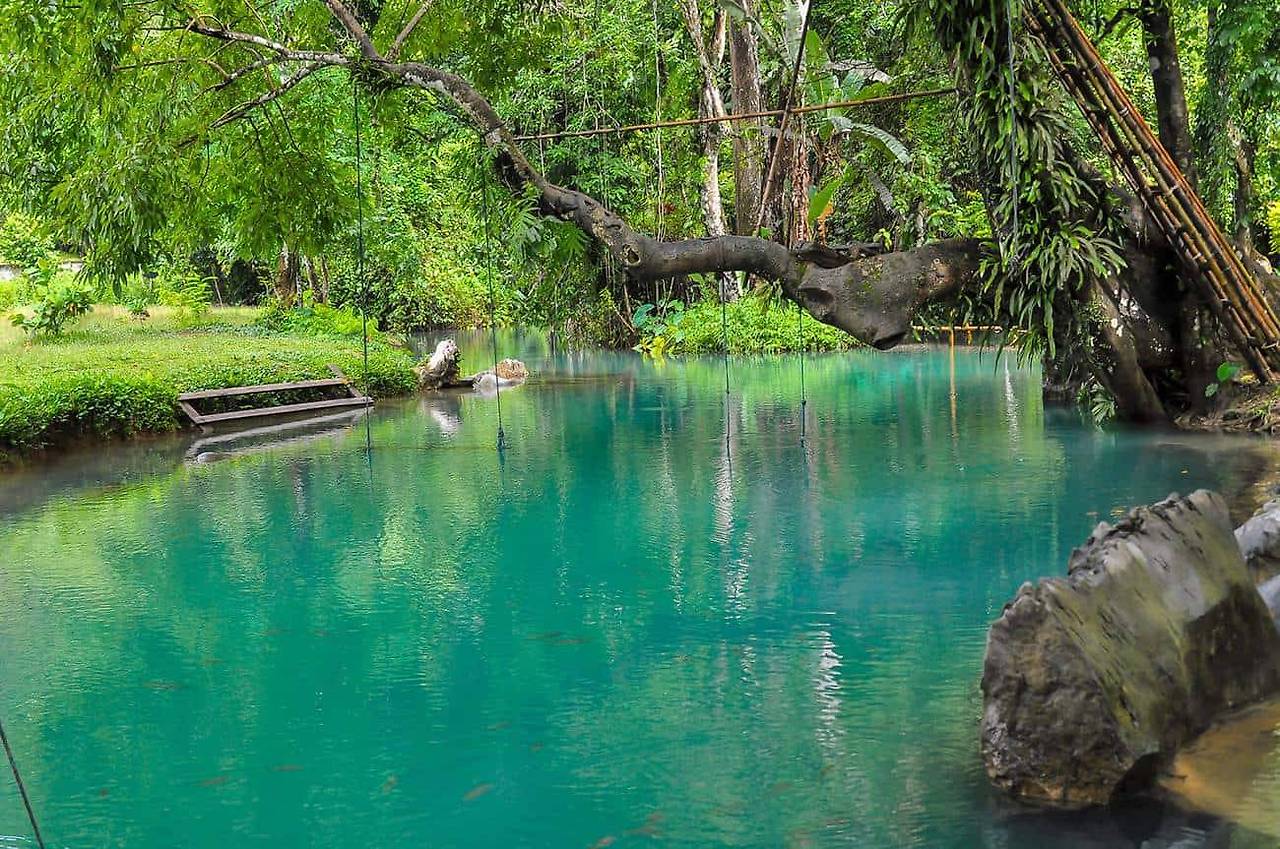 - 탐 푸 캄 동굴(Tham Phou Kham Cave) 과 블루 라군(Blue Lagoon)을 방문하세요 . 확실히 방비엥에서 가장 인기 있는 곳 중 하나입니다. 더위를 식히기 위해 말 그대로 하늘색 라군에 도달하기 위해 경이로운 시골을 걷거나 말을 타세요. 신성한 동굴에 올라가서 청동 불상을 찾으세요(횃불을 가져가는 것을 잊지 마세요)